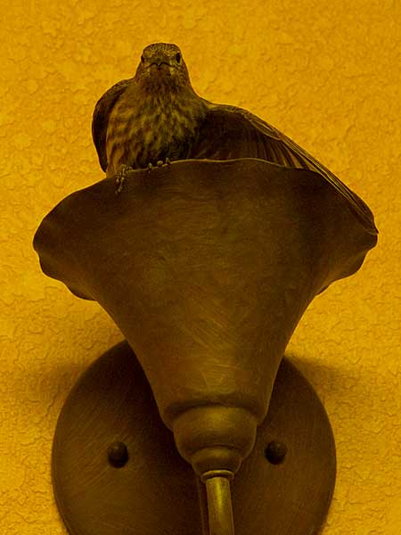 Closeups of the bird hanging out on the Light Fixture |